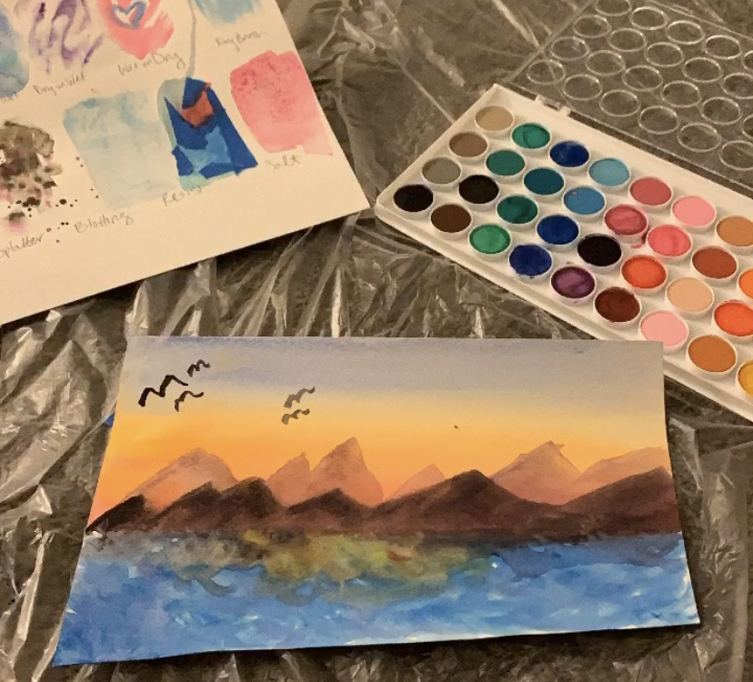 Instead of recreating the original watercolor inspiration piece, I decided to instead focus on learning basic watercolor technique. My friend, Lauren, had heard about a class that her husband’s friend was conducting via Zoom. We both signed up and logged on at the appropriate time. For $10 we got an hour-long tutorial on the various painting techniques used in watercolor.