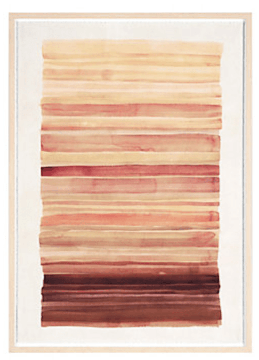 Back in February (during the pre-COVID era), my husband and I were strolling through our favorite, local outdoor shopping center and we wandered into a home decor store called Z Gallerie. I loved the ridiculously gaudy nature of the shop’s collection. My husband hated it. “It’s all useless!” he declared with a broad sweep of his hand and an exasperated sigh. I giggled because, well, he’s absolutely right. Who needs a giant glass octopus beverage container for their dining room table? But who wouldn’t want one? One piece did catch my eye, though: a large, framed watercolor painting of four horizontal brush strokes in varying shades of pink. It was so simple, yet the massive, metallic frame made it seem glamorous. The price tag read $249.95. “I bet I can make this for under $50,” I told Jimi. He looked at me with genuine concern and asked, “But why would you want to?”