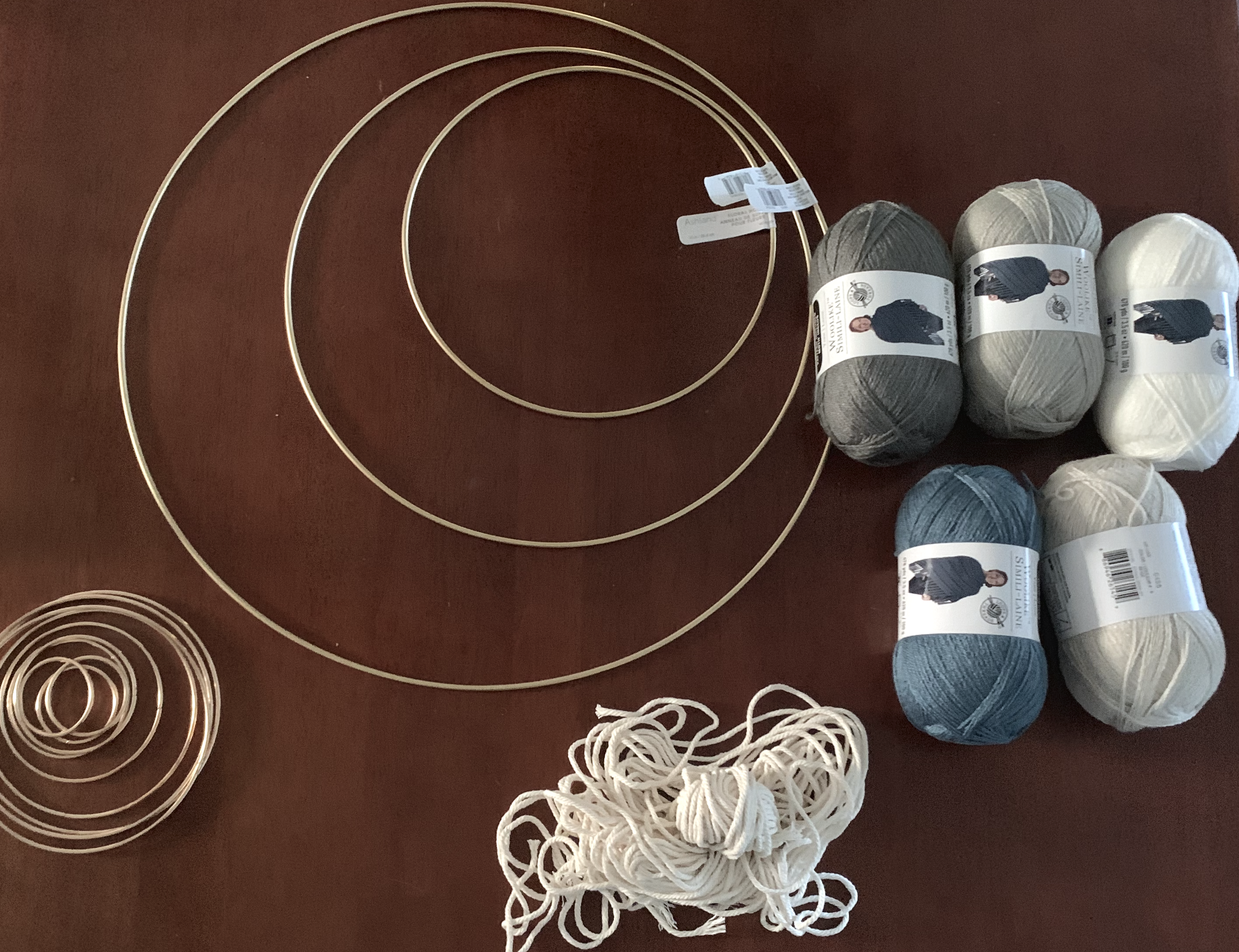Instead of ordering thread on Amazon, I decided to go to Michaels and actually look at the options available. I landed on a crochet thread called Woolike Yarn by Loops & Thread, based on the color availability, weight of the strands, and the price. While I was there, I also picked up three floral hoops, some gold wire, and a gold chain. Here’s the full supply and cost list: